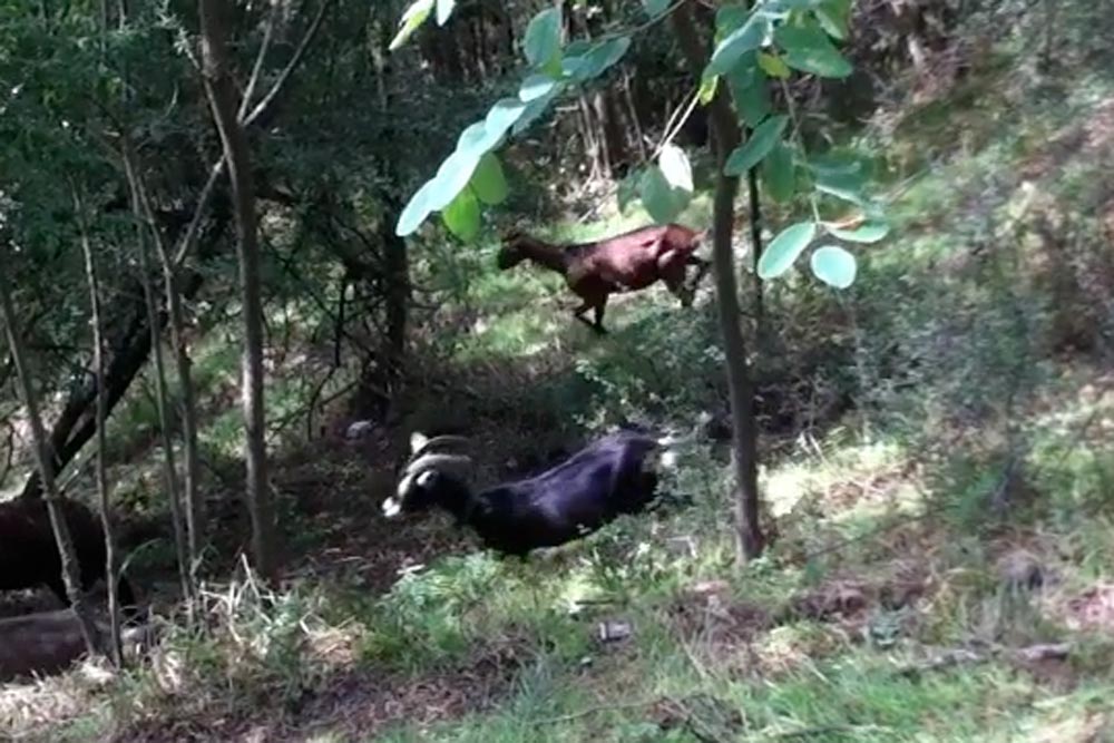Quite simply, the heavy rain and strong winds brought down a number of trees in the area behind Barga where the goats browse freely during the daylight hours.