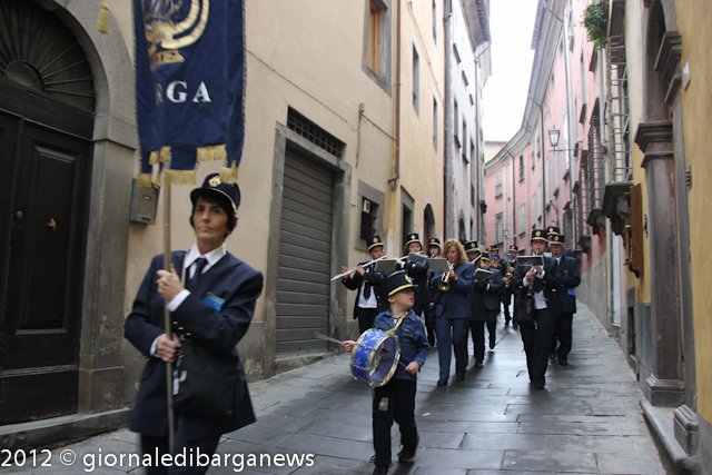 Festa in grande stile in questo pomeriggio piovoso di sabato 29 settembre appena trascorso, per celebrare i cento anni di storia della Filarmonica “Gaetano Luporini” di Barga. Nonostante il tempo incerto, che per fortuna nei momenti del corteo non ha dispensato pioggia, il programma si è svolto senza intoppi. Per celebrare l’anniversario della banda di Barga sono giunti nella cittadina anche i colleghi della Filarmonica “Pietro Mascagni” di Corfino e della Filarmonica “Alfredo Catalani” di Coreglia.