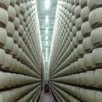 Facciamo un passo indietro nella giornata che stiamo raccontando e ci troviamo tra i grandi bollitori in cui, nel caseificio sociale “Il Fornacione” di Felina (RE), nasce il Parmigiano Reggiano. Storia, tradizione, tecnologia e un moderno sistema di controllo garantiscono sapori e valori nutrizionali al termine di un lungo percorso. Arriva il latte, si fa il formaggio, si mette nelle fasce di plastica che imprimeranno l’inconfondibile scritta sulla forma, poi la forma va nella fasce di metallo e cala nella salamoia per circa venti giorni. Seguono mesi, fino a 24, di stagionatura e controlli. Enormi scaffali custodiscono migliaia di preziose forme, un robot le gira e le spazzola, un martellino e il sapere di mani esperte certificheranno la qualità finale. Il risultato è duplice: il marchio a fuoco del Parmigiano Reggiano sulla forma e il prezzo fissato per la vendita. Intanto, dopo il terremoto della scorsa primavera anche le scaffalature sono state rese antisismiche. E’ la misura minima per salvaguardare il valore del formaggio e la vita di chi tra quelle scaffalature deve muoversi.