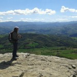 Tutto è iniziato con un saluto al parcheggio della Pietra di Bismantova. Un saluto strano, un saluto tra persone che tramite Facebook sono quasi in confidenza ma che si incontrano per la prima volta. Poco dopo siamo davanti all’Eremo, un edificio dalle proporzioni variabili secondo la luce e il punto di vista sulle strapiombanti pareti de “la Pedra”, come Normanna chiama la Pietra di Bismantova. Dentro l’eremo ci accoglie una delle “Madonne del Latte”, le raffigurazioni di Maria intenta ad allattare Gesù Bambino. Ci congediamo rispettosamente per salire su quello strano ed affascinante altipiano che chiude in alto questo lembo di terra rialzata che ha resistito fino ad oggi al completo sgretolamento. I nostri piedi si spingono fino al bordo di quella tavola mentre Normanna ci parla di Pietro da Talada, “Pietro dei Colori”. A lui piacevano di più l’oro e il rosso ma di fronte a noi c’è un’altra tavolozza di colori, una tavolozza in cui mille sfumature di verde e altrettante diverse tessiture del paesaggio riescono ad inebriarci.