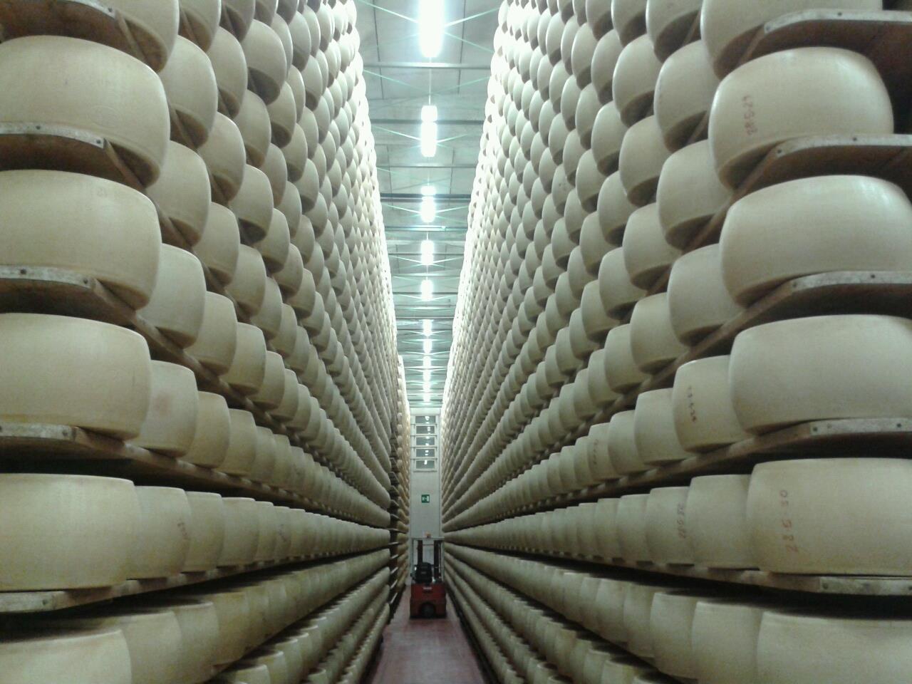 Facciamo un passo indietro nella giornata che stiamo raccontando e ci troviamo tra i grandi bollitori in cui, nel caseificio sociale “Il Fornacione” di Felina (RE), nasce il Parmigiano Reggiano. Storia, tradizione, tecnologia e un moderno sistema di controllo garantiscono sapori e valori nutrizionali al termine di un lungo percorso. Arriva il latte, si fa il formaggio, si mette nelle fasce di plastica che imprimeranno l’inconfondibile scritta sulla forma, poi la forma va nella fasce di metallo e cala nella salamoia per circa venti giorni. Seguono mesi, fino a 24, di stagionatura e controlli. Enormi scaffali custodiscono migliaia di preziose forme, un robot le gira e le spazzola, un martellino e il sapere di mani esperte certificheranno la qualità finale. Il risultato è duplice: il marchio a fuoco del Parmigiano Reggiano sulla forma e il prezzo fissato per la vendita. Intanto, dopo il terremoto della scorsa primavera anche le scaffalature sono state rese antisismiche. E’ la misura minima per salvaguardare il valore del formaggio e la vita di chi tra quelle scaffalature deve muoversi.