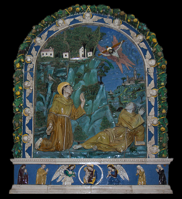 Sul lato sinistro della chiesa, di fronte alla pala della “Natività”, si trova il:“San Francesco stimmatizzato” 1511 c. Pala centinata ad altorilevo, in terracotta policroma invetriata.  Girolamo della Robbia (1488-1566) Formatosi nella bottega del padre Andrea.