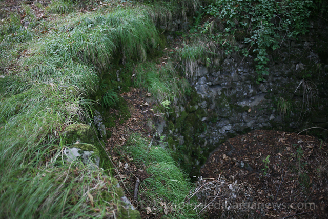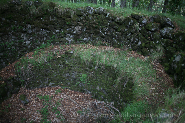 L’indizio per capire meglio di cosa si tratta è il fatto che attorno questo tesoro archeologico ormai sepolto nel fitto del bosco e in rovina c’è un sentiero che entra nella costruzione seguendone il profilo circolare, scendendo fino alla base.