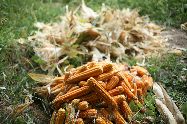 The next step is to dry off the maize by putting it out in the sun during the day and bringing it in during the night. Then the individuals seeds will be separated and laid out on mats once again during the day, turning the seeds over at regular intervals to make sure that they are thoroughly dried out.