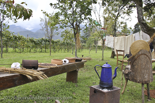 Le nubi e i piccoli spruzzi di pioggia che si sono susseguiti per tutto il pomeriggio non hanno intaccato la convivialità del pranzo nel bel giardino, composto da buon minestrone di farro, insaccati e dolci tipici e da una cert’ora in poi da mondine, belle, dolci e salde.