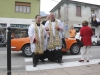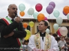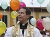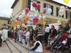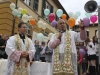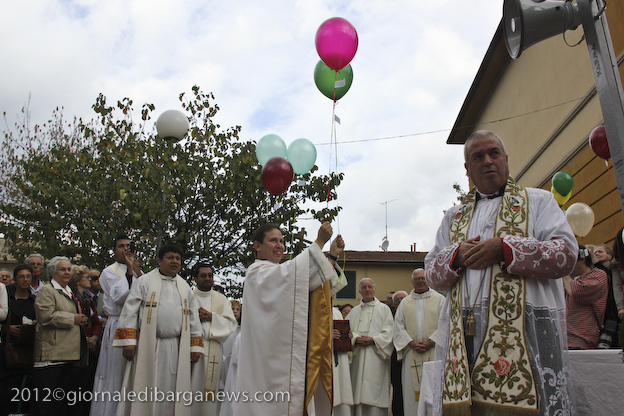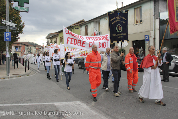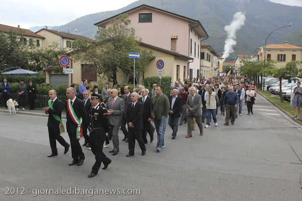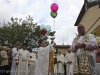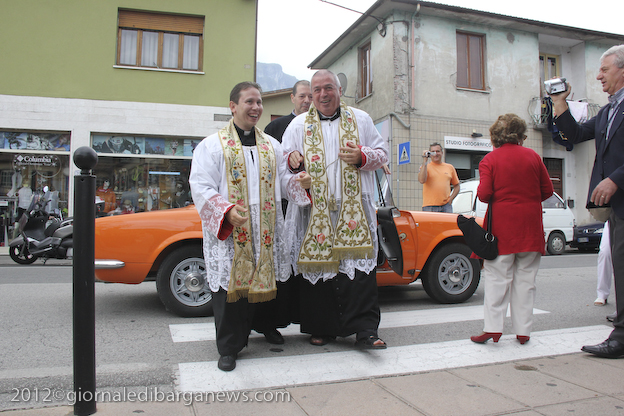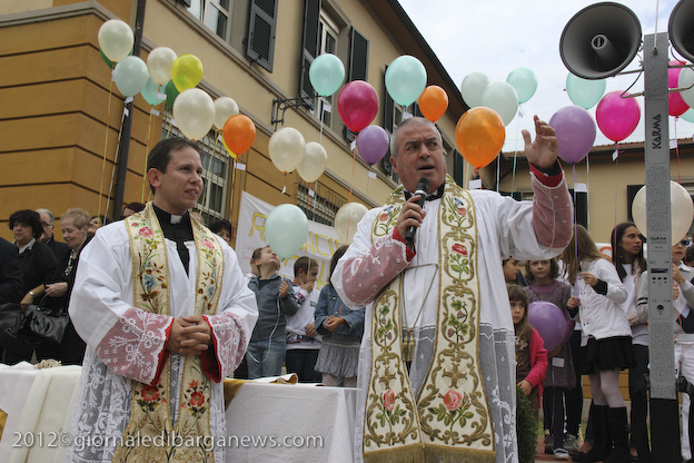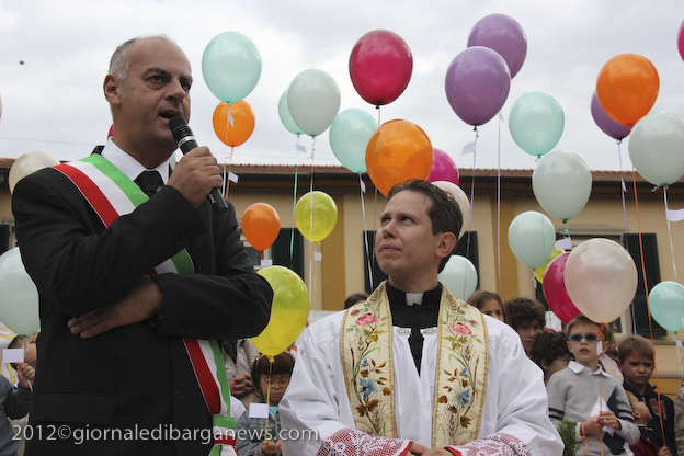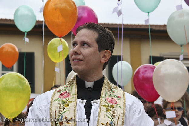 L’appuntamento ha avuto luogo sul sagrato della chiesa di Ponte all’Ania: ad accoglierlo don Lorenzo ha trovato non solo don Antonio, ma anche tanti conoscenti tra i quali l’amico di sempre Carlo Donati che ha tenuto un emozionante discorso di bentornato; ad accompagnare il tutto, la filarmonica Luporini di Barga. Dopo una breve visita in chiesa è partito il corteo motorizzato, sotto la guida del Vespa Club di Barga e del Gruppo dei Ragazzi del Cuore; don Lorenzo è così giunto su di un’auto d’epoca scoperta sino a Piazza IV Novembre, dove ha trovato ad attenderlo una piccola folla. In tutta la mattinata circa un migliaio di persone provenienti da Fornaci e da tutti i paesi limitrofi hanno voluto manifestare, gravitando intorno alla piazza, alle vie e alla chiesa, un segno concreto della propria stima e del proprio affetto per il novello presbitero. In piazza don Lorenzo ha ricevuto il saluto delle autorità per il Sindaco Marco Bonini e rivestito i sacri paramenti, mentre i ragazzi del dopo cresima sbandieravano gli striscioni preparati e i bambini dell’Unità Pastorale facevano volare al cielo una miriade di palloncini colorati, cui precedentemente erano state legate delle brevi preghiere per il giovane.