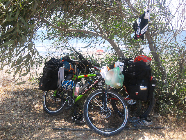 Ritroviamo il barrino sulla spiaggia dove abbiamo lasciato le sacche per trasportare le bici in aereo. Il ragazzo ci riconosce e ce le restituisce, non crede che abbiamo fatto il giro dell’isola, troppo lungo e faticoso dice. Mare, birra per tutto il pomeriggio, poi in serata si va all’aeroporto a sistemare le bici nelle sacche. Nella notte d’attesa per il volo dell’indomani mattina già partono le confabulazioni sulle prossime avventure. Transiberiana, giro del Mar Nero, Giro dell’Islanda, Coast to coast Usa, Sud America, poi ripieghiamo su un nostrano giro di Campia a tappe da fare in autunno, finalmente col fresco.