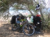 Il giorno dopo ripartiamo di buon mattino, alle 7. I primi 30 km sono in discesa, a tratti è un esperienza mistica, forse più del deserto. Poi piano piano la strada torna piana, c’è qualche piccola salitella, ma ormai siamo del mestiere. Ci fermiamo a prendere un caffè nel bar-casa-cucina di una signora gentilissima che troviamo sulla strada, con due vecchiettini gentili che ci parlano continuamente in greco, senza accorgersi che non capiamo nulla. Guardano incuriositi le bici cariche.