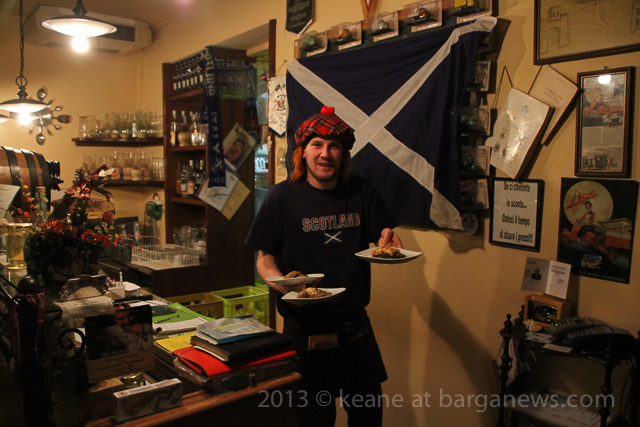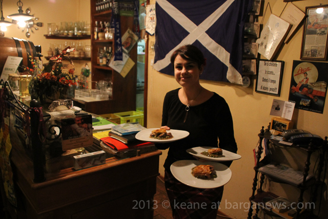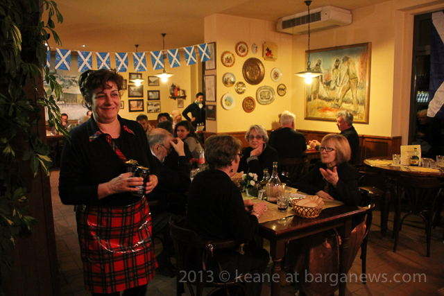 The earthquake alert (article here) which meant that many people in Barga Vecchia had to leave their homes for the night, also curtailed the Burns Supper to some extent but still people enjoyed themselves at Da Riccardo’s feasting on smoked salmon and of course the traditional fare of Bashed Neeps, Tatties and Haggis.