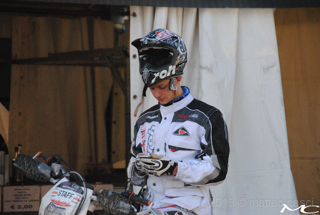 Alle 15:30 I migliori 30 qualificati del mattino sono partiti per la sfida del pomeriggio: 5 giri del percorso di Hell’s Gate. La partenza come sempre è stata fulminea, tutti si sono avventati sulla prima curva per entrare nell’inferno. Jarvis parte subito di corsa, seguito da Walker che lo tallona, mentre Riccardo Piacenza si attesta nelle posizioni centrali del gruppo. Lungo il primo giro Jarvis prende il largo seguito da Walker e Cody Webb (Usa, Beta). Il pilota de i Baracca lotta come un leone lungo le innumerevoli trappole del percorso, perdendo e riconquistando posizioni metro dopo metro. Jarvis deciso a vincere non molla e Walker è costretto a perdere terreno sempre insidiato da Webb che lo insidia.