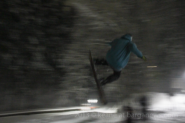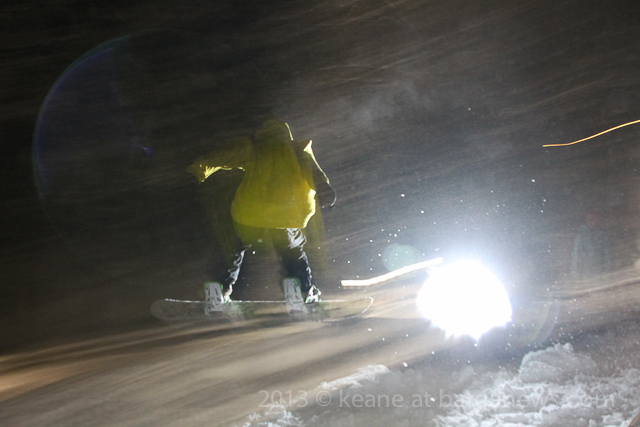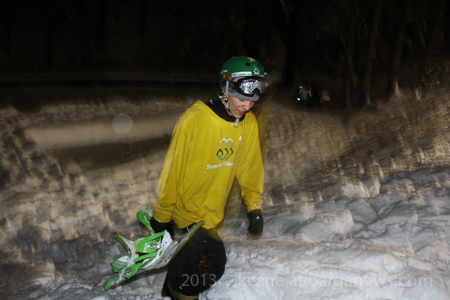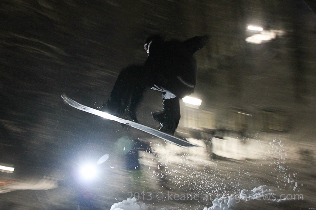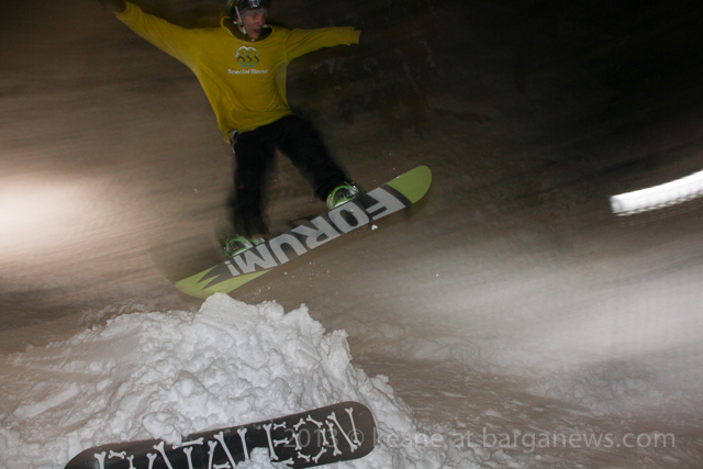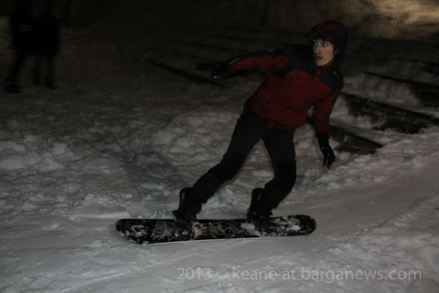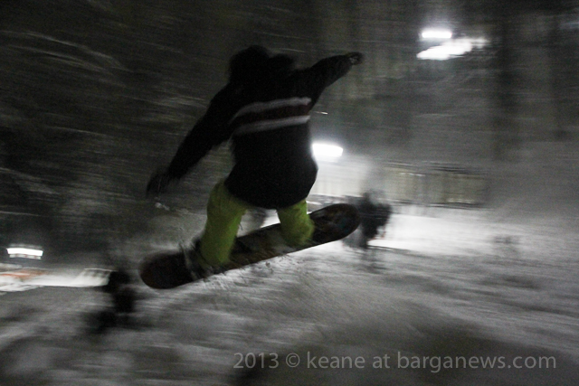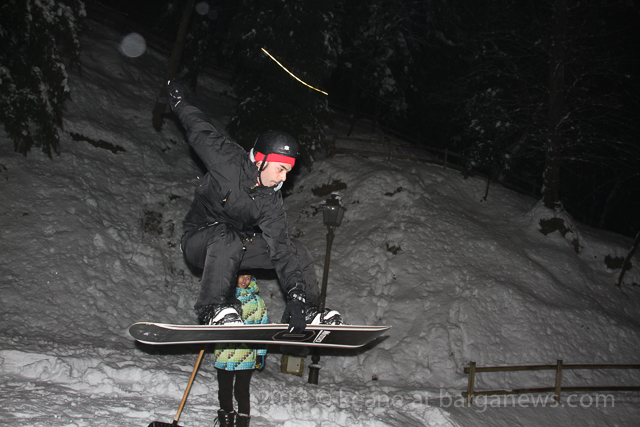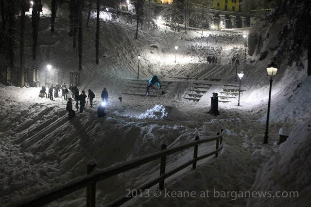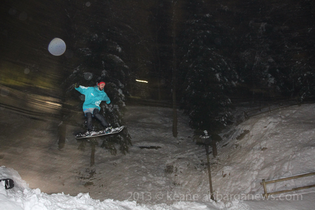 As midnight came round, snowmen were built, snowball fights took place and a compact group of snowboarders were perfecting their art as they launch themselves down the steep incline and up into the air from a specially built snow ramp.