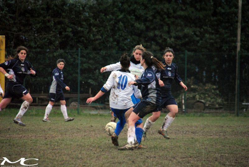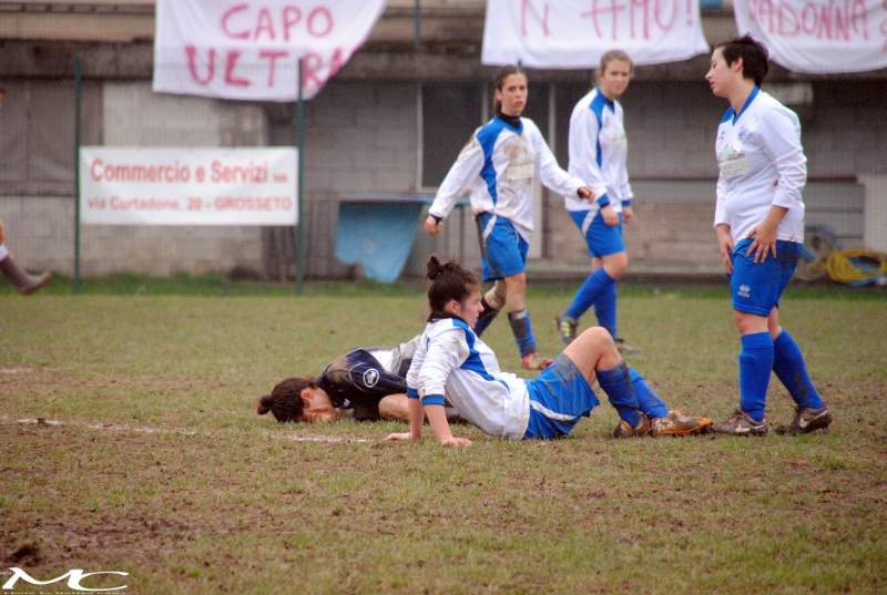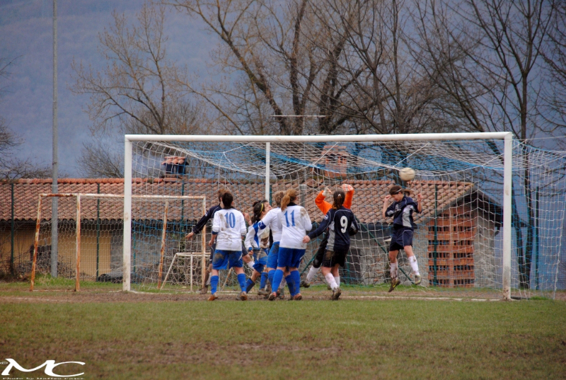 Pareggio meritato per le ragazze allenate da Martino, che nei minuti finali del match agganciano l’ 1 a 1 contro la capolista. La partita inizia subito nei peggiori dei modi per il Barga che subisce nel primo minuto di gioco il gol dello svantaggio: Meucci, dopo aver vinto un rimpallo, effettua un tiro dai venti metri che si insacca alla sinistra del portiere. Nonostante la rete subita, le bianco-celesti non mollano la presa e con un buon gioco di squadra chiudono le avversarie nella propria metà campo. Al 27’ arriva la prima vera occasione per il pareggio: Fabbri effettua un passaggio filtrante per Rossi J. che aggancia la palla, si porta al limite dell’area, calcia centralmente ma il portiere blocca a se. Nel finale c’è da registrare un tiro di Muzzarelli e Rossi J., che terminano di poco fuori dallo specchio della porta.