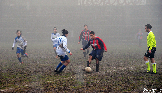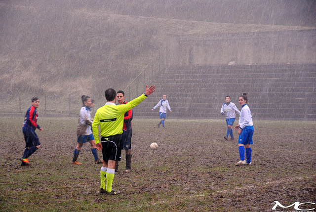 Nel primo tempo la partita è stata giocata bene da entrambe le squadre, date anche le condizione del campo da gioco, in pessimo stato a causa della pioggia e della neve, che ha tra l’altro accompagnato buona parte della ripresa.