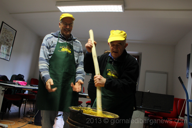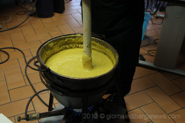 Dopo la teoria – dati colturali, valori nutritivi, importanza nella valorizzazione del territorio – la pratica: un rinfresco preparato dai Polentari di Filecchio proprio a base di… oro giallo.
