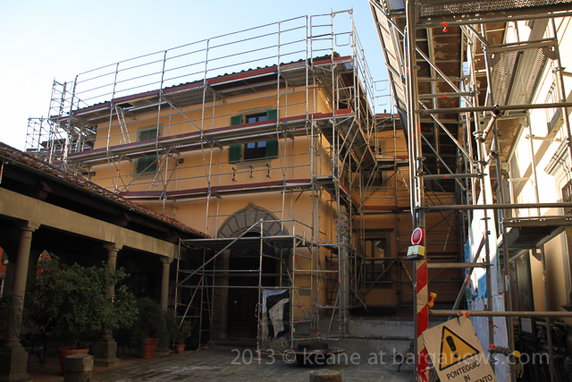 The following morning like clockwork workmen arrived and started erecting scaffolding which over the next couple of weeks completely covered Palazzo Pancrazi allowing workers to start repairing the roof of the building which was in a dangerous condition.