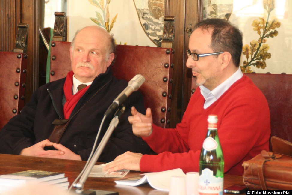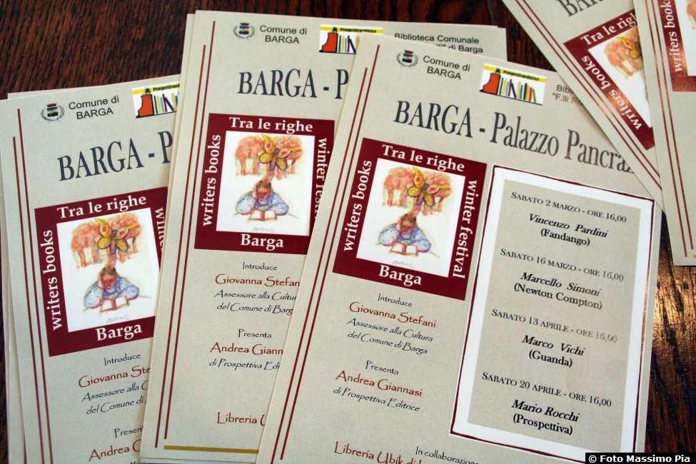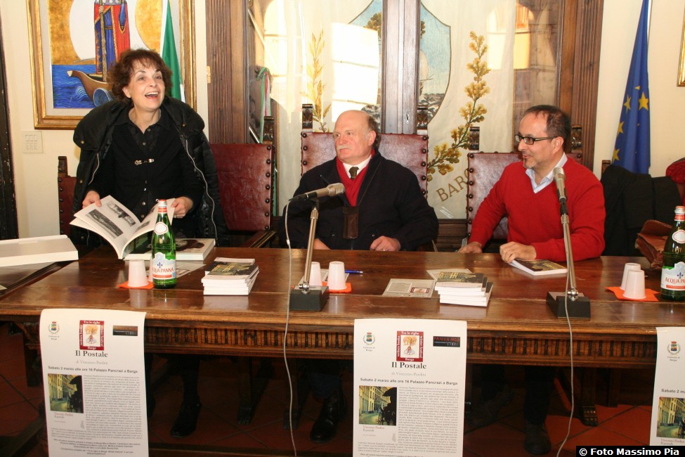 Sabato è salito a Barga, nella Sala Consiliare di Palazzo Pancrazzi, per parlare della sua ultima fatica e di molto altro con Andrea Giannasi, nel programma del ricco calendario di eventi del Tra le righe di Barga Winter Festival apertosi con Marco Malvaldi. Con loro, a fare gli onori di casa, l’assessore alla cultura Giovanna Stefani.