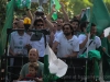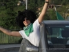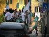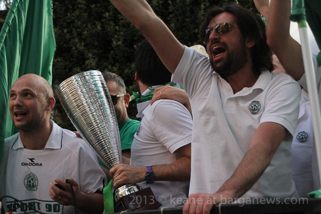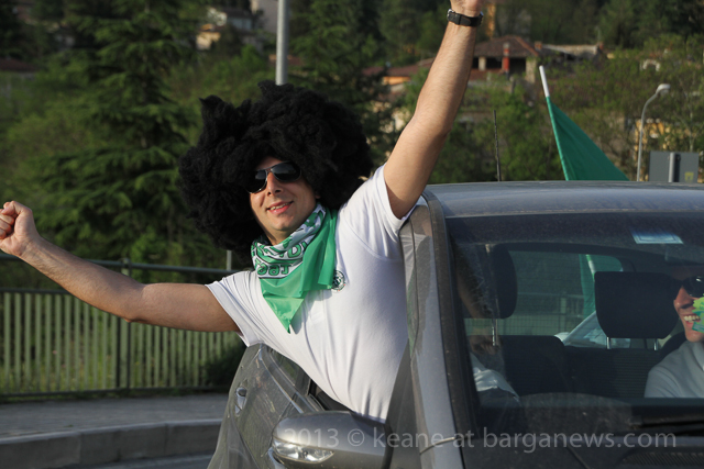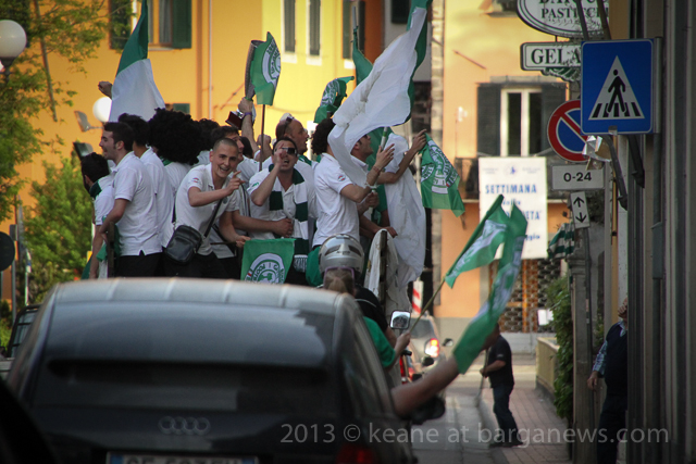 The Gatti Randagi football team and their supporters were out on the road again this evening with a cavalcade of cars and scooters, horn blowing and flags waving but this time led by a tractor and trailer kitted out for the occasion with a generator and music centre.