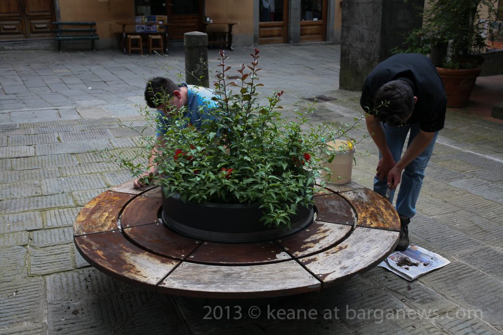 In 2005 the Comune bought and installed some new street furniture – benches, signs, rubbish bins and two large cast iron circular seats which were positioned in the two principal piazzas of Barga Vecchia – Piazza Angelio and Piazza Salvo Salvi. Visitors to Barga could rest their aching legs and admire the plants that were planted in the middle of the large cast iron circular bases.