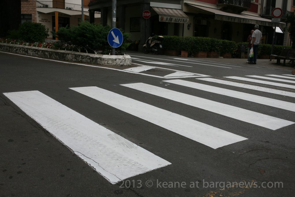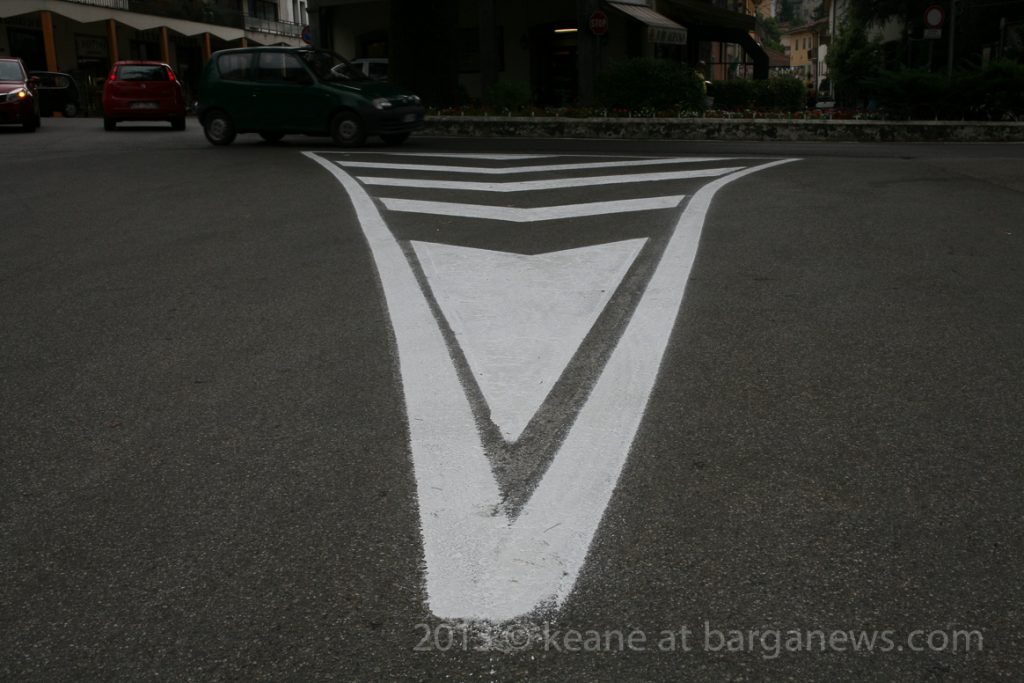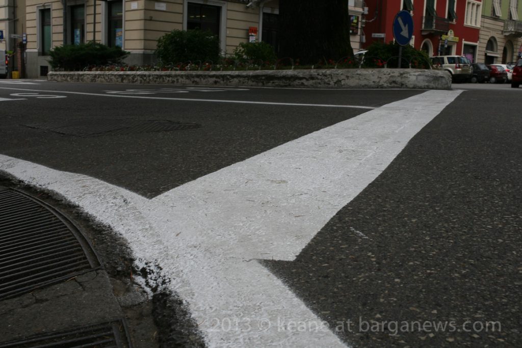 Now it could well be that the extremes of climatic conditions which occur in this area make painted road signs less able to withstand those huge jumps in temperatures and snow ploughs dragging over them during the winter must wear them down but as some commentators in Barga Giardino watching the workmen repainting the stop signs mentioned, we do not have a really huge amount of traffic in this area on our roads, so why do the signs have to be repainted almost every year?
