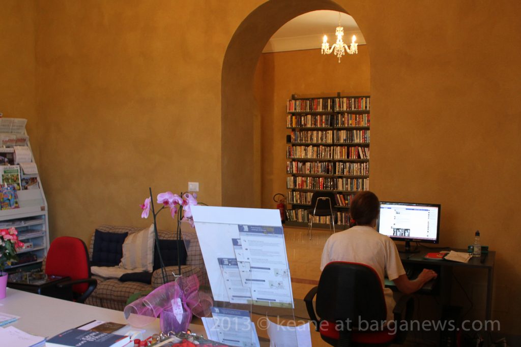The library, which also houses the collection of work by Vincenzo Gonnella has a printing and photocopier section and internet point and is open every afternoon Monday to Friday from 2 pm until 7 pm and from 9 am to midday Tuesdays and Thursdays. Their telephone number is :724573, email: biblioteca@comunedibarga.it