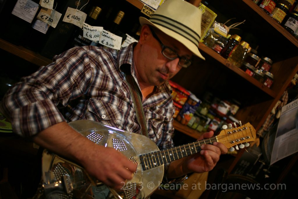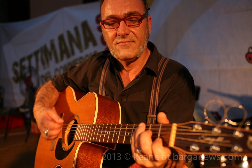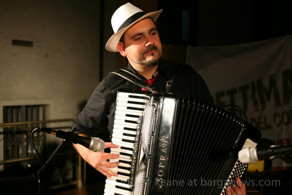 Alessandro Rizzardi on mandolin and sax, Fabio Guazzelli on guitar, Keane – bodhràn and percussion, Ugo Menconi on fisarmonica, Leonardo Gnesi – double bass …. and of course, Andrea Gonnella on vocals
