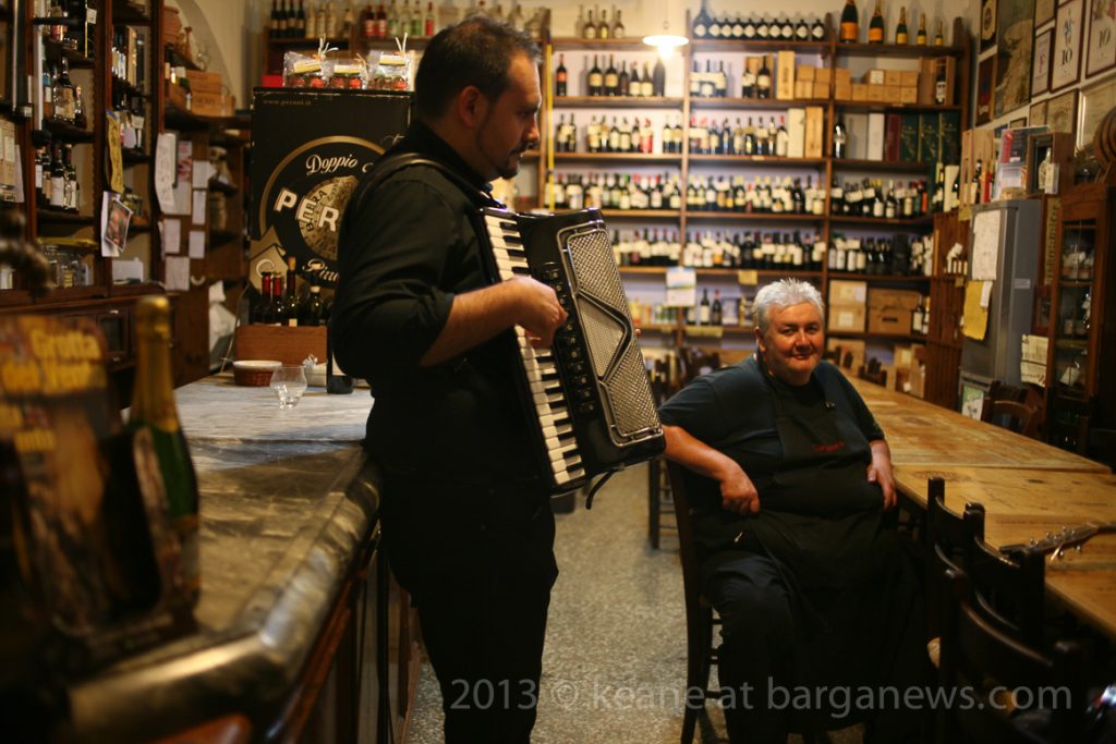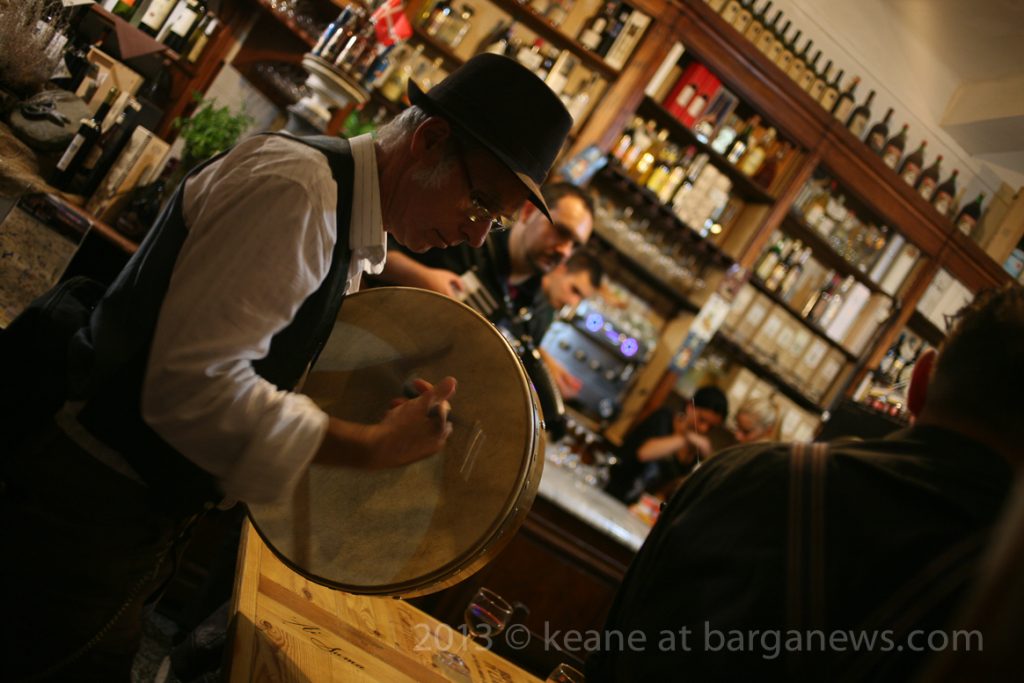 Then, instead of packing up their instruments and returning home they called into The Vecchio Mulino where the host, Andrea Bertucci plied them with some of his superb red wine and before they knew it they had just played another set inside the establishment and the clock on the wall was showing nearly 3 am.