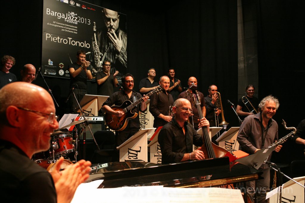 The Orchestra Barga Jazz, conducted by Maestro Mario Raja played the selections for the Barga Jazz Festival 2013 – sez A – compositions based on music by Pietro Tonolo and sez B – original compositions. The evening was presented by Greta Ciurlante