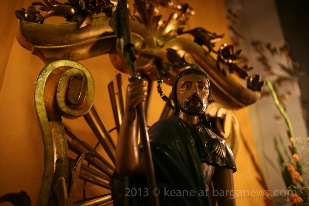 Barga’s 17th century Chiesa di San Rocco, built on the foundations of a 14th-century chapel just beyond the lower bridge to the Giardino District, recalls this legend graphically in a statue over its entrance. It features the dog, as well as the saint, holding his pilgrim’s staff in one hand, and raising the tattered hem of his tunic with the other to bare the bubonic sores on his thigh.