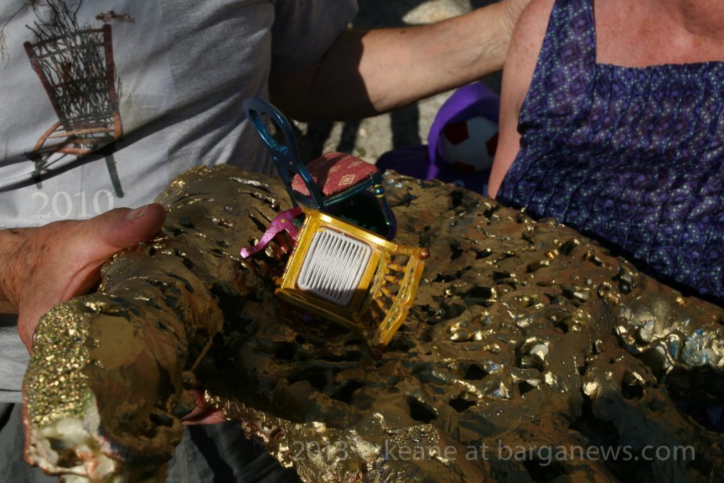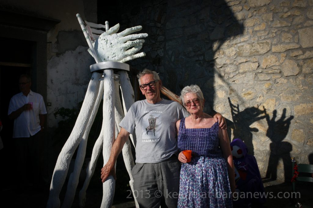 Martin Galloway and his wife Beryl were presented with a “golden handshake” for all their work on this project which has now arrived at the magical number of 100 chairs.