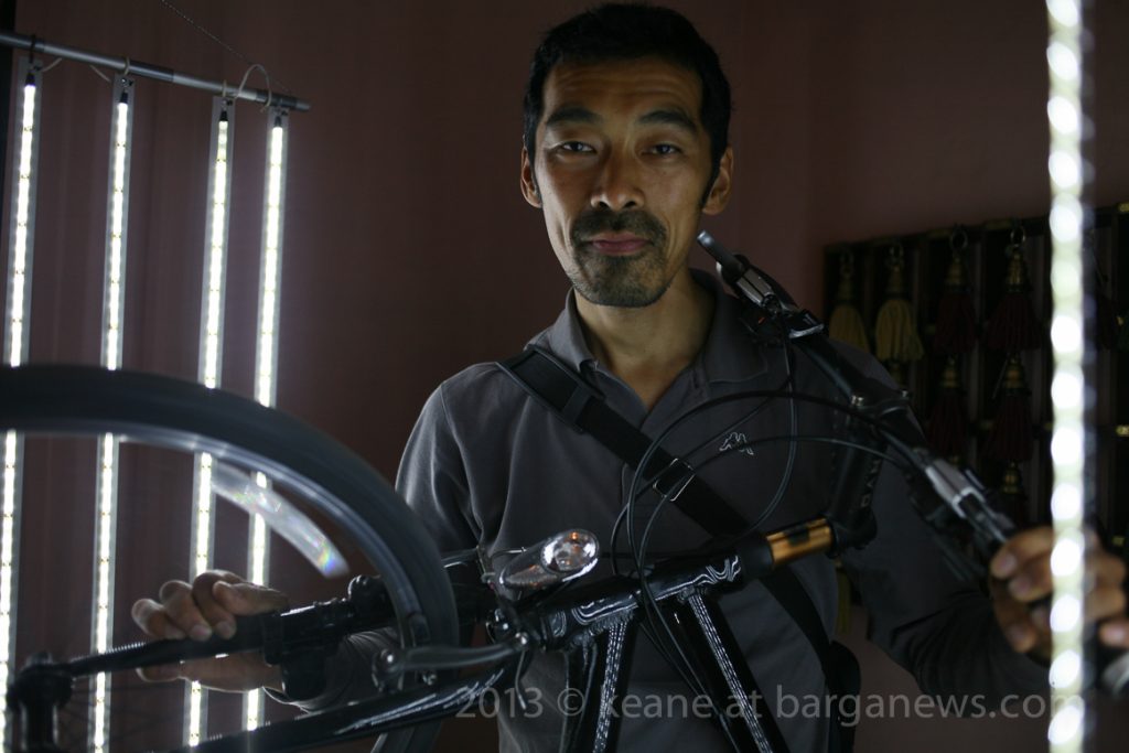 He has created a lighting system of seven movable bars, each containing a bank of LED lights with which to illuminate a series of portraits of the jazz musicians who will be playing at the Eno Jazz sessions towards the end of this month as part of the Barga Jazz Festival 2013.