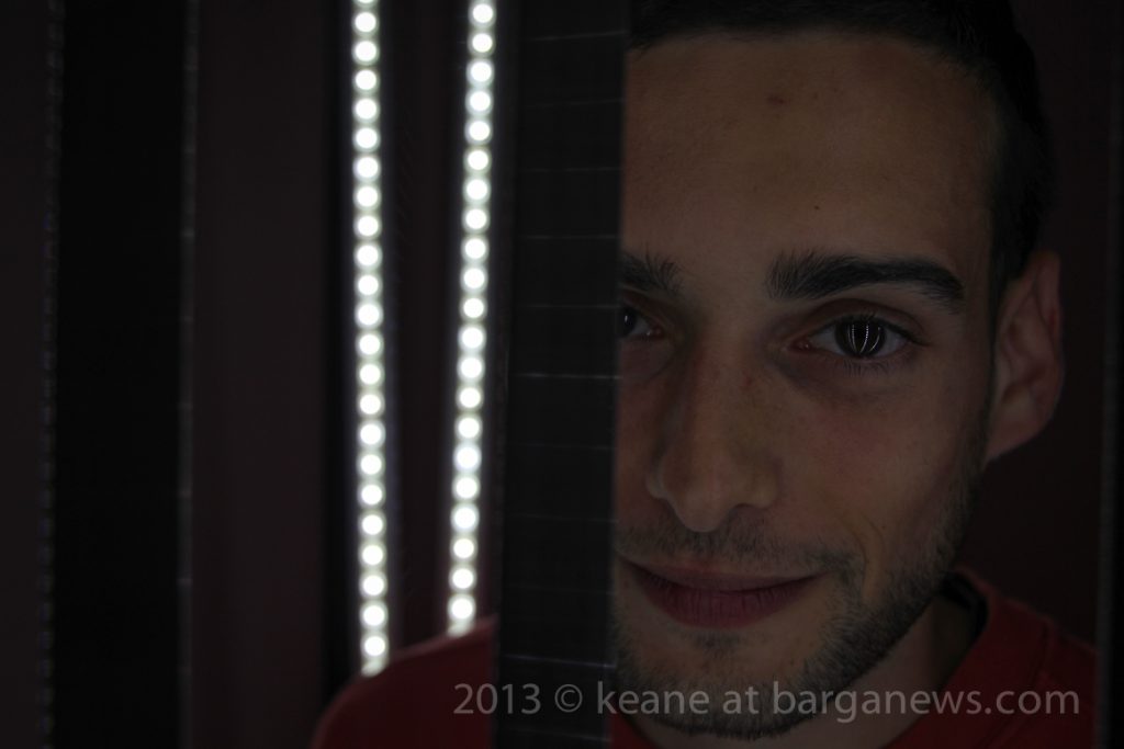 He has created a lighting system of seven movable bars, each containing a bank of LED lights with which to illuminate a series of portraits of the jazz musicians who will be playing at the Eno Jazz sessions towards the end of this month as part of the Barga Jazz Festival 2013.