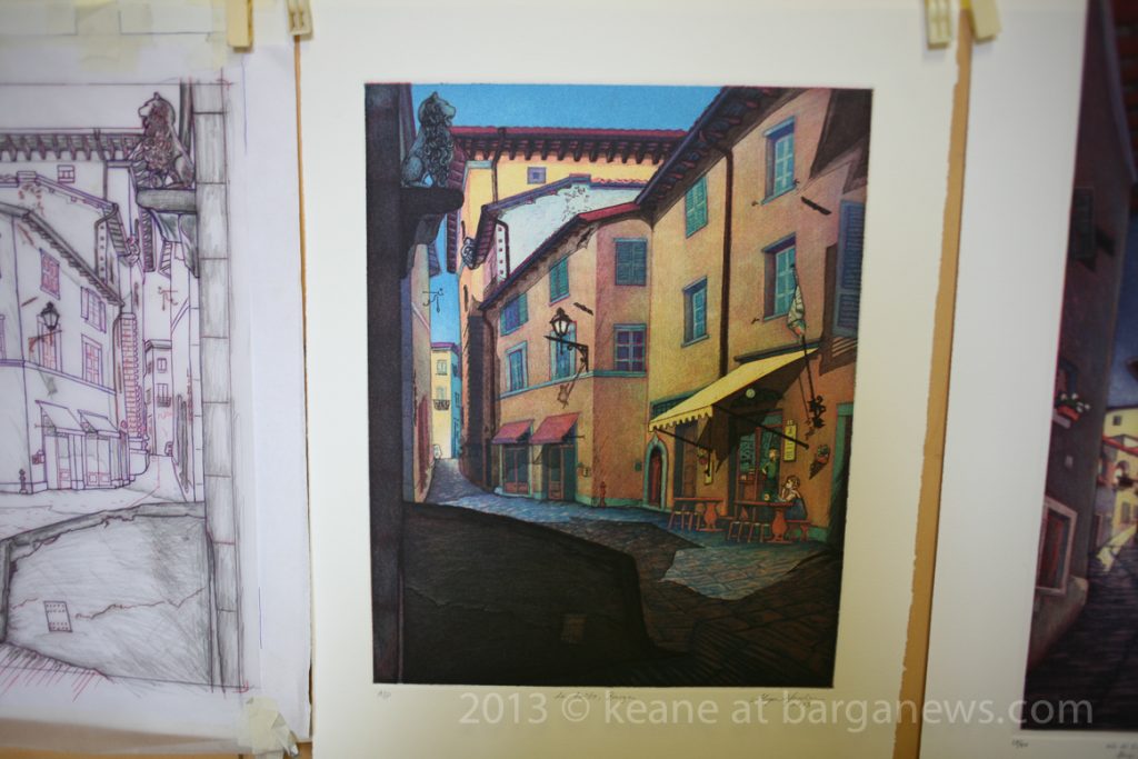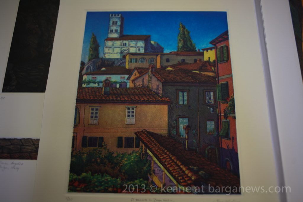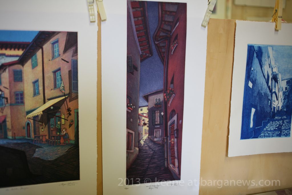 Swietlan Nicholas Kraczyna has recently mounted and shown his current exhibition here in Barga celebrating 40 years of work in the city, this afternoon was the opening of another show, this time of work produced by himself and his students who attended this year’s colour printing workshop.