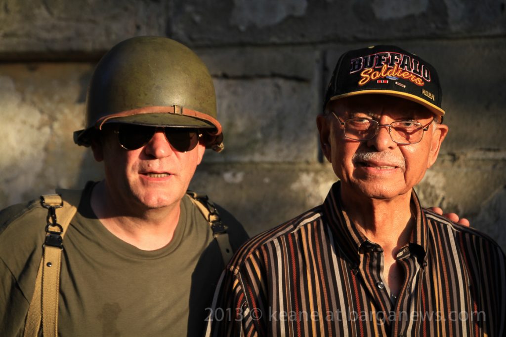 One of the more poignant moments during the days filming was when Ivan met up with this group and even held of of their rifles in his hands remarking on the difference between the arms that the Buffalo Soldiers of the 92nd Infantry Division carried – semi automatic and the fully automatic german arms they faced.