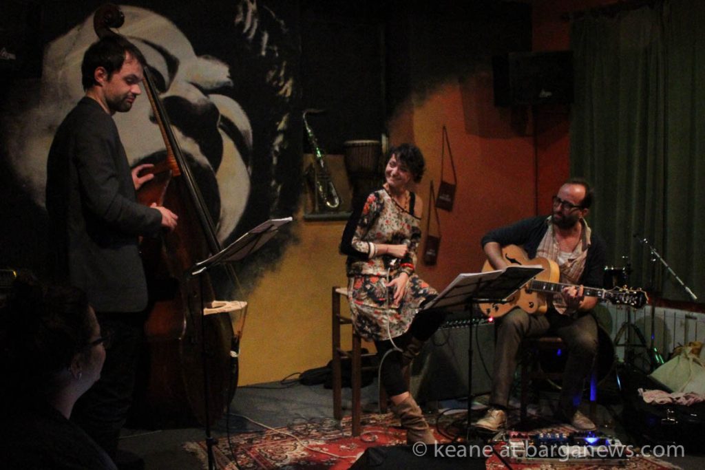 This evening she showed a new side, something in a lighter vein as the Betta Blues Swing Trio Took to the stage at the Barga Jazz Club, backed up by the implacable Luca Giovacchini on guitar and the rock solid Matteo Anelli on double bass.