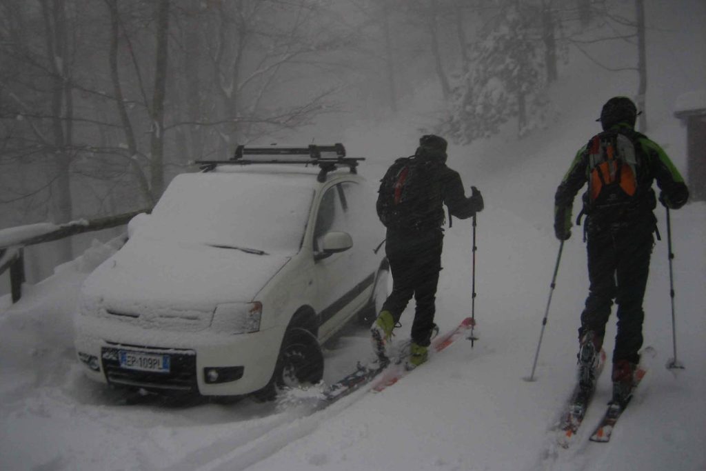 La grande nevicata dei giorni scorsi ha fatto salire rapidamente il manto nevoso in poche ore. Così venerdì sera, senza togliere neanche la polvere dagli sci, gli abbiamo caricati in macchina e ci siamo diretti al rifugio gestito da Naik e Elisabetta, per passare la nottata.