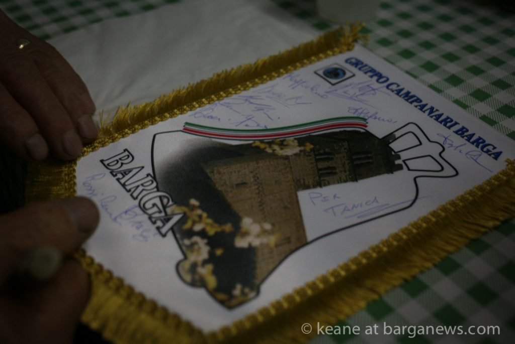 This evening in Vignola, their home base at the foot of the Duomo in Barga Vecchia some of those traditions came together as the bell rings of Barga were in party mood.