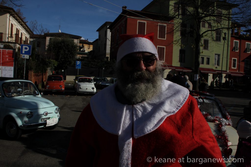 A wonderful mix and match of ideas and concepts as a number of Father Christmas’s large and small could be found wandering round and enjoying the view of dozens of Fiat 500’s, that most traditional car of Italy from the 50s, 60s and onwards decorated for Christmas and all lined up in the Piazza Fiat with the sound of Christmas music blaring out of the radios.