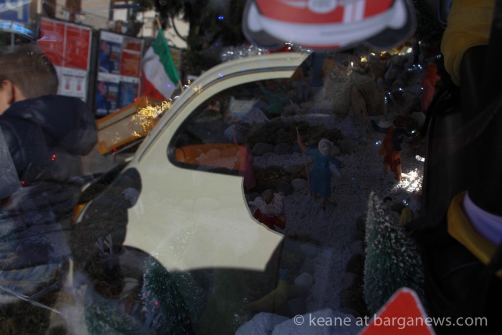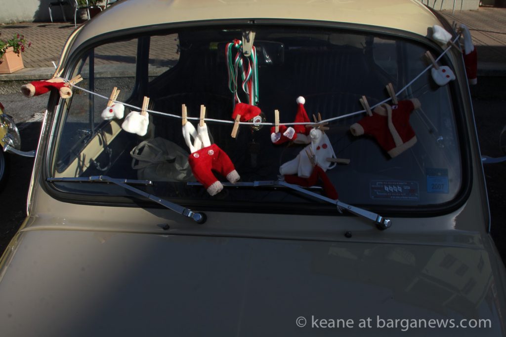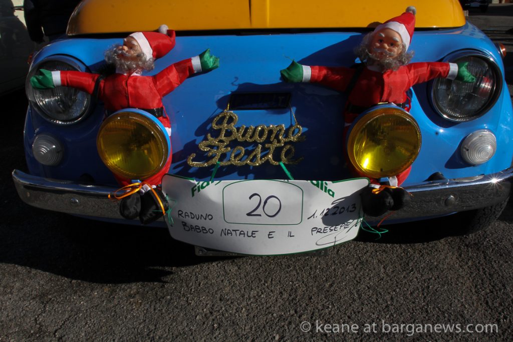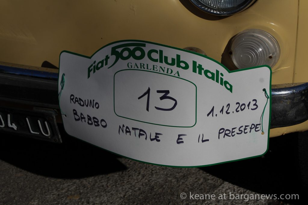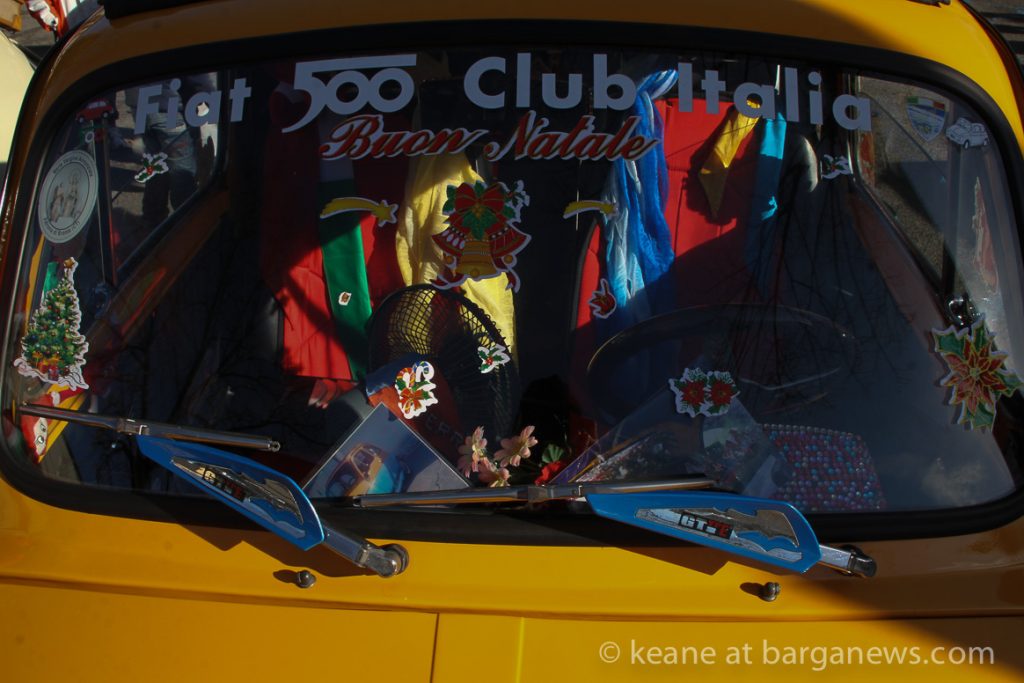 The event, organised by the FIAT 500 club Italia was entitled: “Raduno Babbo Natale e il presepe”and that was what was on offer – FIAT 500 decorated with Presepe – the traditional Christmas crèche.