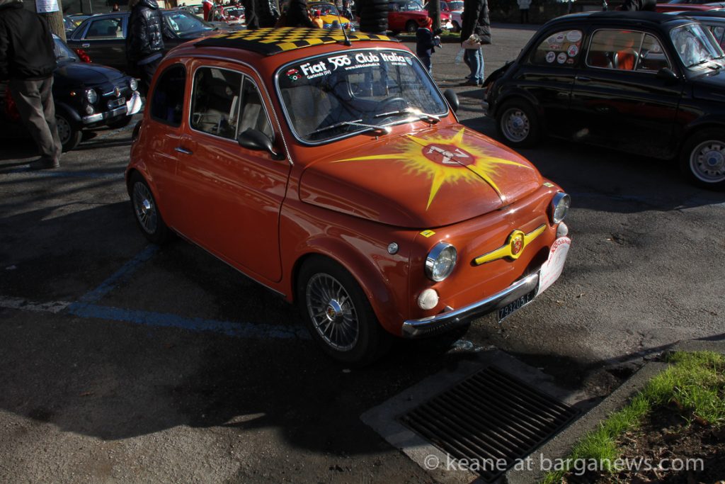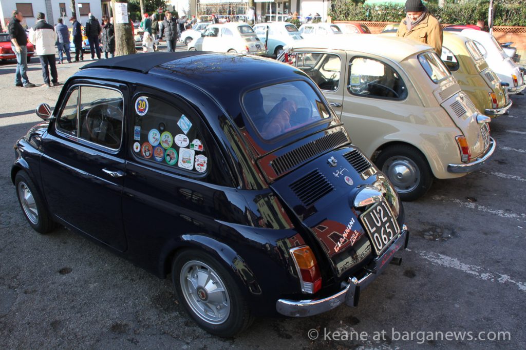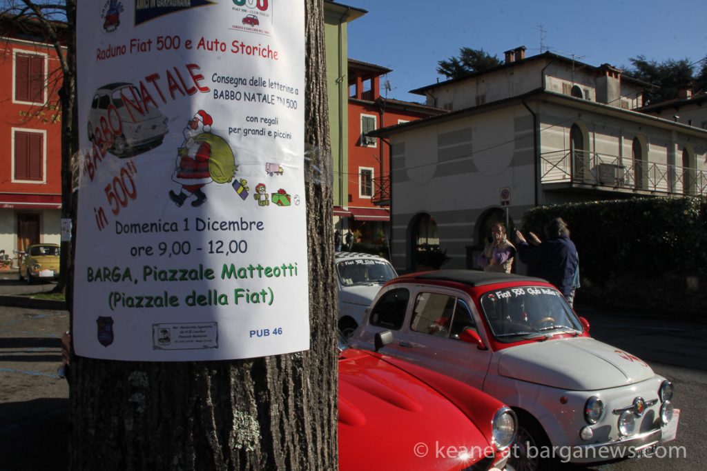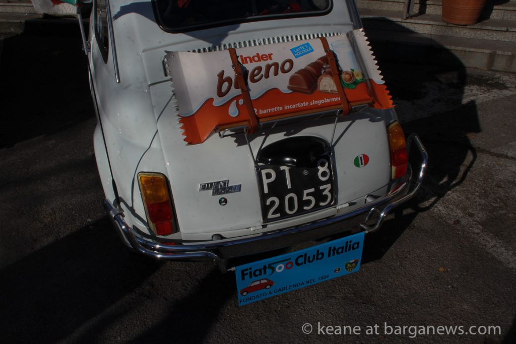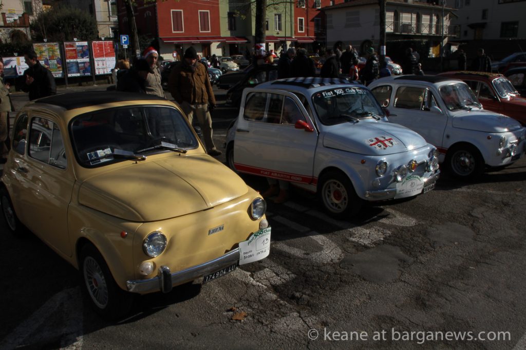 The event, organised by the FIAT 500 club Italia was entitled: “Raduno Babbo Natale e il presepe”and that was what was on offer – FIAT 500 decorated with Presepe – the traditional Christmas crèche.