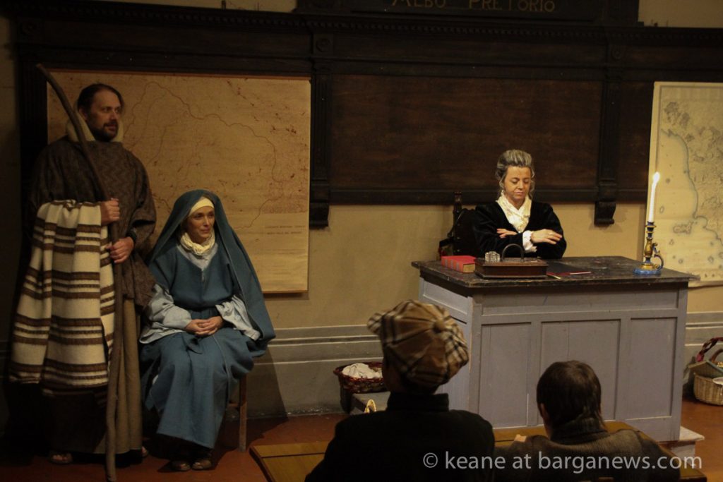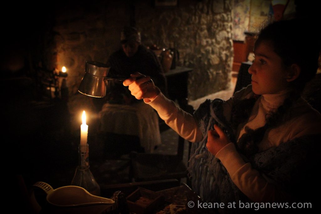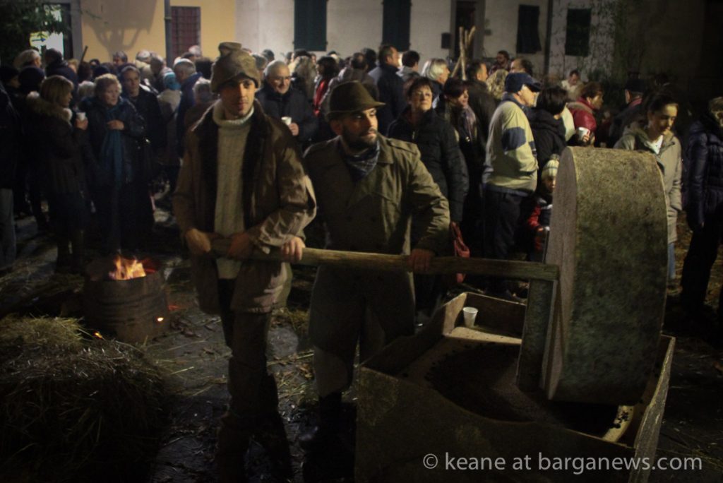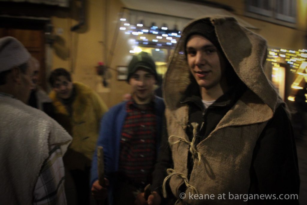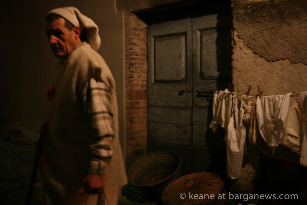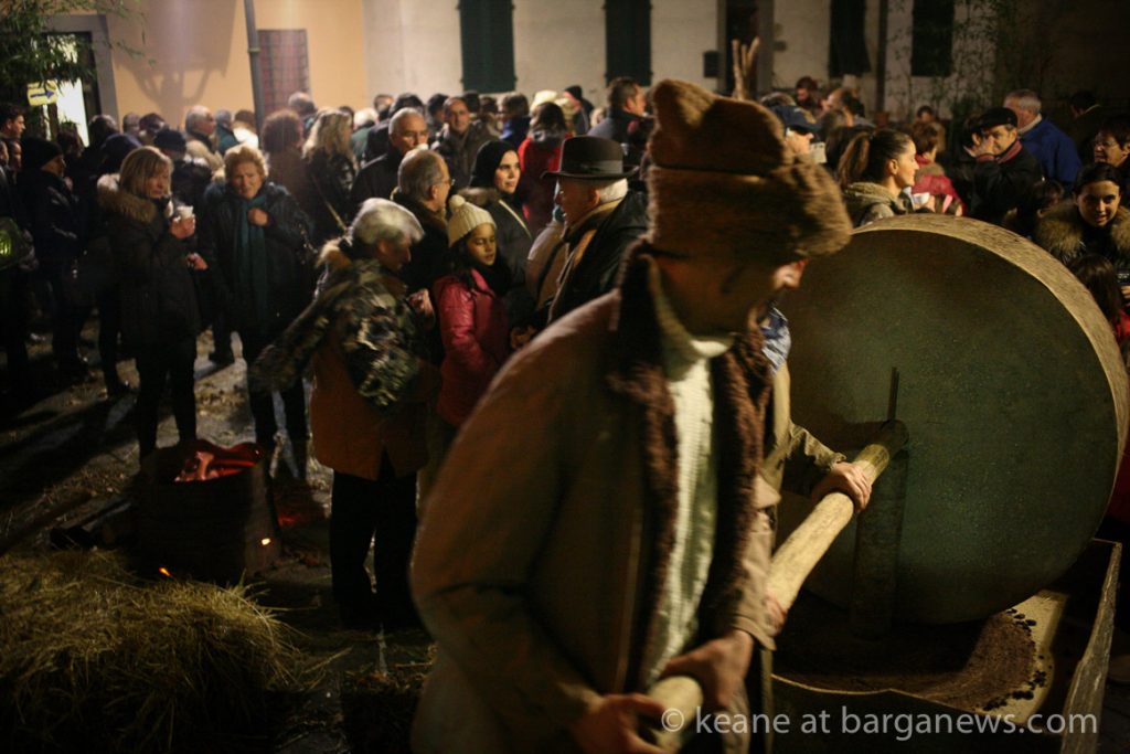As they then make their way through Barga Vecchia, they stop and rest outside the cellars and cantinas of millers, stonemasons, people making sausages, carpenters, charcoal makers and cobblers all dressed in clothes from the turn of the 1900′s.