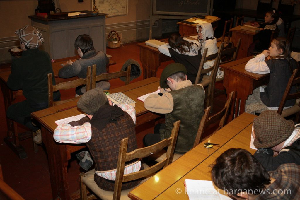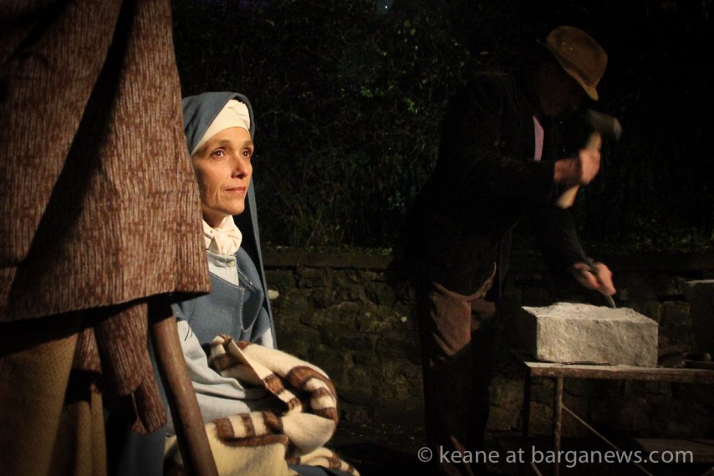 Looking at them the date should be somewhere around zero. The Roman centurions and census takers (speaking in Latin) would seem to confirm that date but just before Mary and Joseph and their donkey arrived in the census room, their first port of call was to a schoolroom with desks and chairs, pupils and a teacher all meticulously wearing clothes dating from probably the 1930′s. Outside of the school two guards stand both dressed as soldiers from the 16th century.
