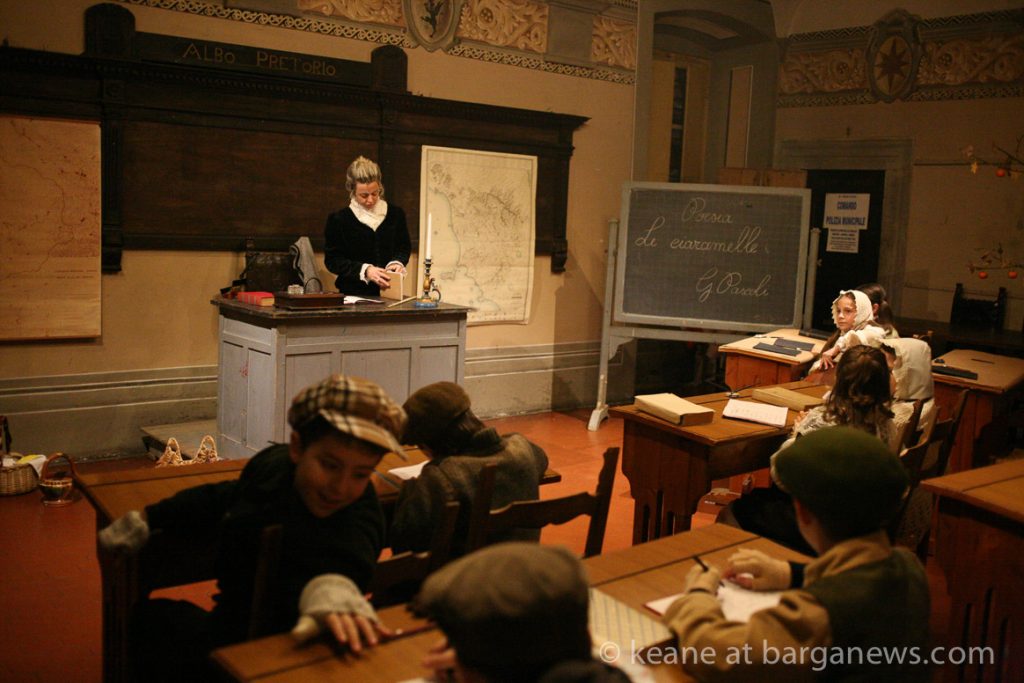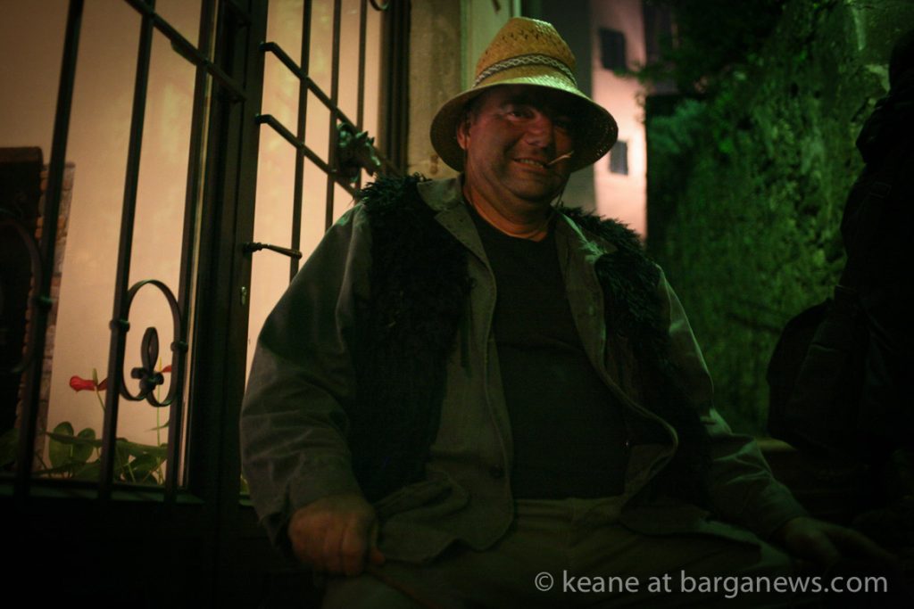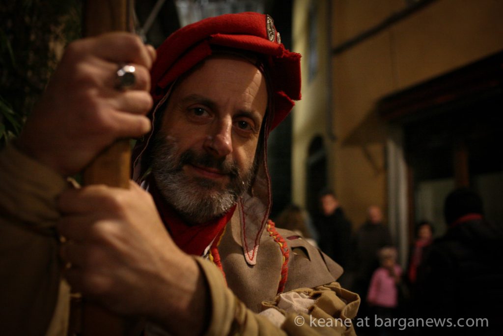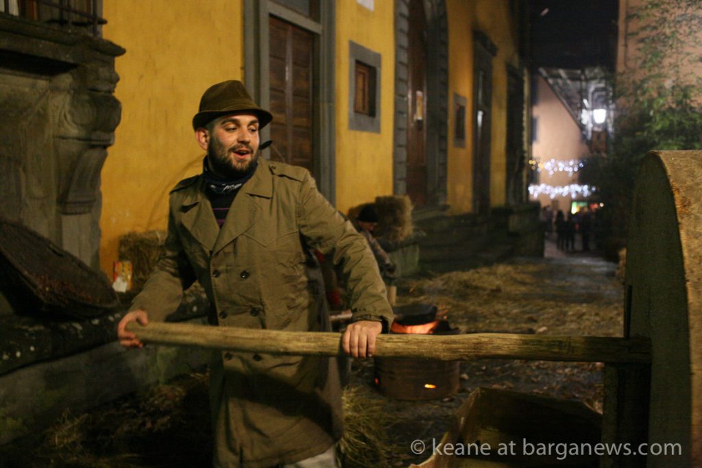 As they then make their way through Barga Vecchia, they stop and rest outside the cellars and cantinas of millers, stonemasons, people making sausages, carpenters, charcoal makers and cobblers all dressed in clothes from the turn of the 1900′s.