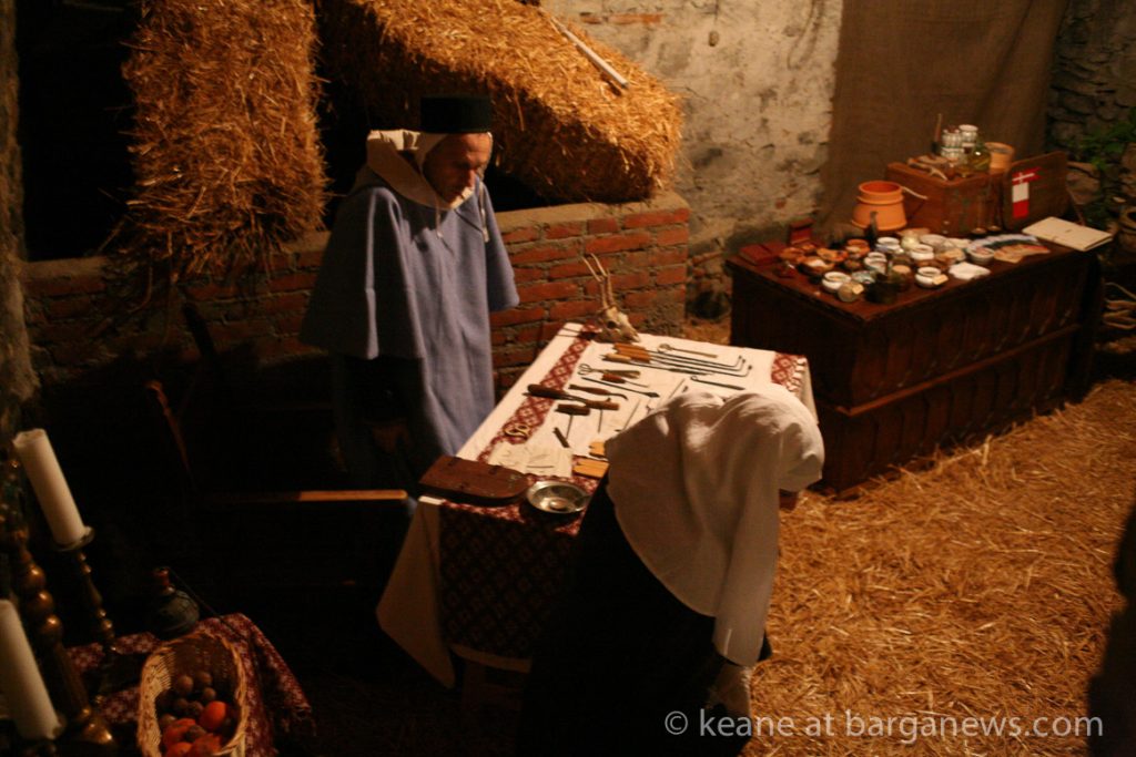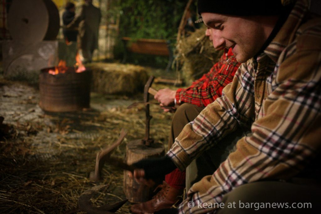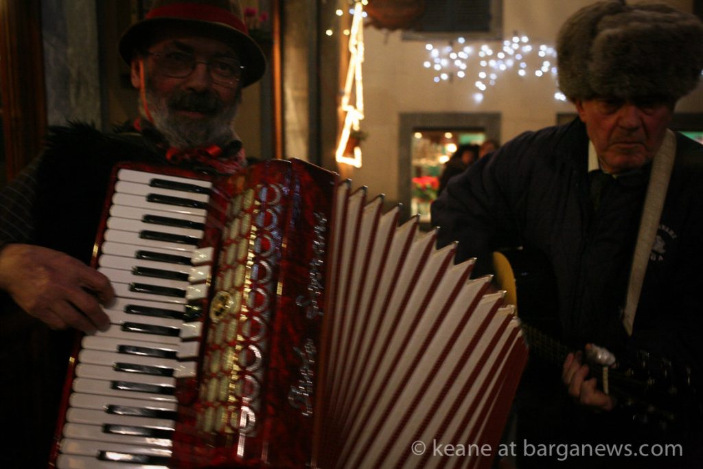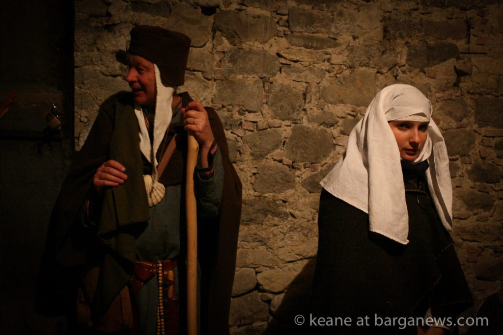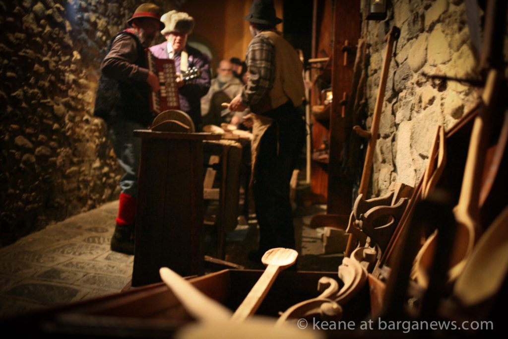 As they then make their way through Barga Vecchia, they stop and rest outside the cellars and cantinas of millers, stonemasons, people making sausages, carpenters, charcoal makers and cobblers all dressed in clothes from the turn of the 1900′s.