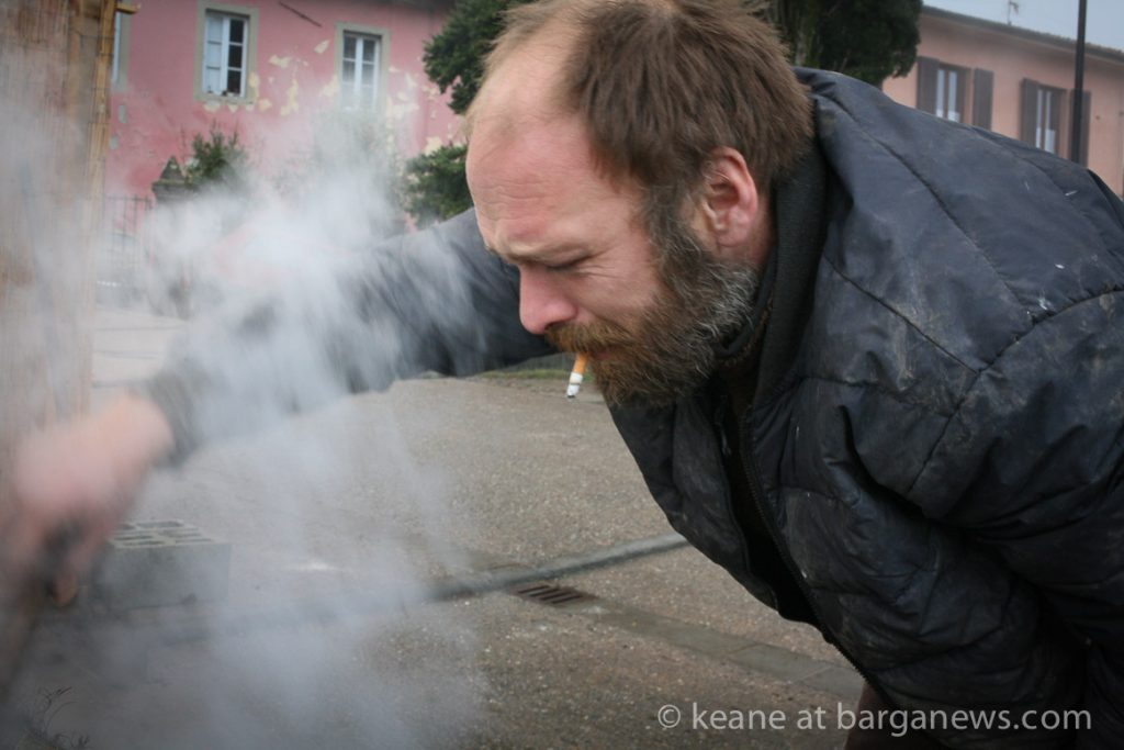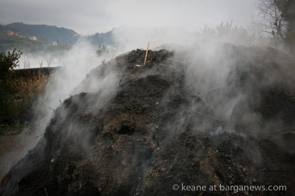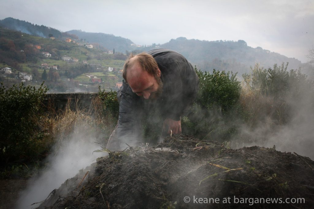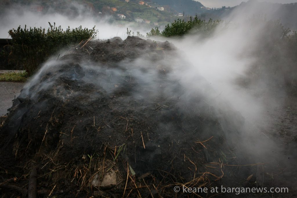 That pervasive and singular smell that comes from the traditional carbonaia – the earth mound kiln this year could not be detected in Barga Vecchia as the wind this year was blowing the smoke and smell away from the city and down towards Fornacetta.