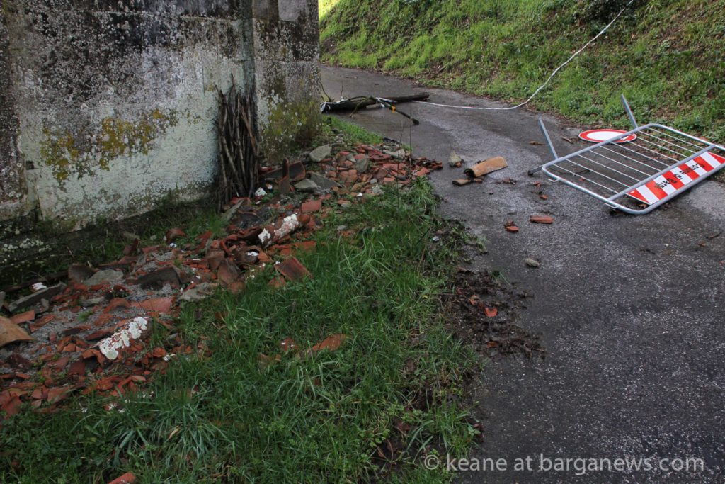 At some point a barrier was put up on the road below the back of the church to stop people from passing underneath what is still a dangerous area as more tiles could quite easily come down in a strong wind but that too has been downed and left sprawling across the tarmac.