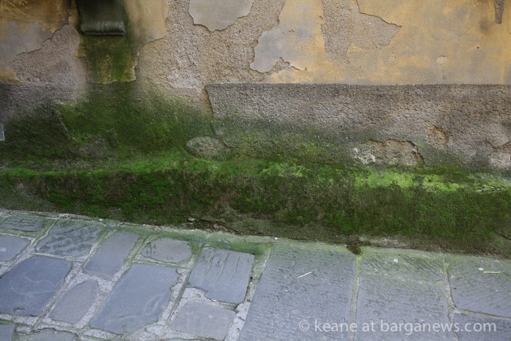 In Barga Vecchia one of the visual signs of the continual damp weather is right under our feet – the stone work which paves the narrow streets of the city are starting to take on a strange greenish hue.