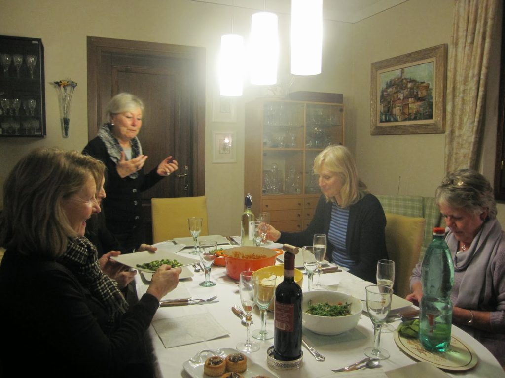 The members of the Barga Book Club met on Thursday in the serene interior of the one home seemingly untouched by this winter’s liquid destruction or personal hardship. We could leave our troubles outside inasmuch as possible. As usual we were sublimely hosted and treated to a luscious meal provided by those present with even a reminder of those not present with Plum jam from the Bianchessi’s provided by Isobel to accompany her delicious scones.