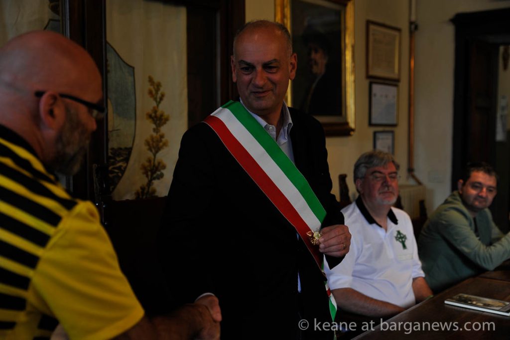 After a presentation by the L’assessore allo sport, Gabriele Giovanetti and the Mayor of Barga Marco Bonini at the Palazzo Pancrazi the supporters then moved on to the main hub of all this Celtic energy – Paolo Gas’s bar on the Fosso.