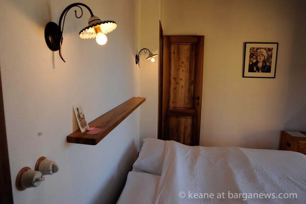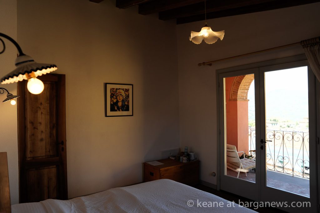 The double bedroom has French windows opening onto a broad balcony with breathtaking views over Barga to the Alpi Apuane and beyond. A wonderful space to relax with a book or just to sit and enjoy the beauty, the peace.