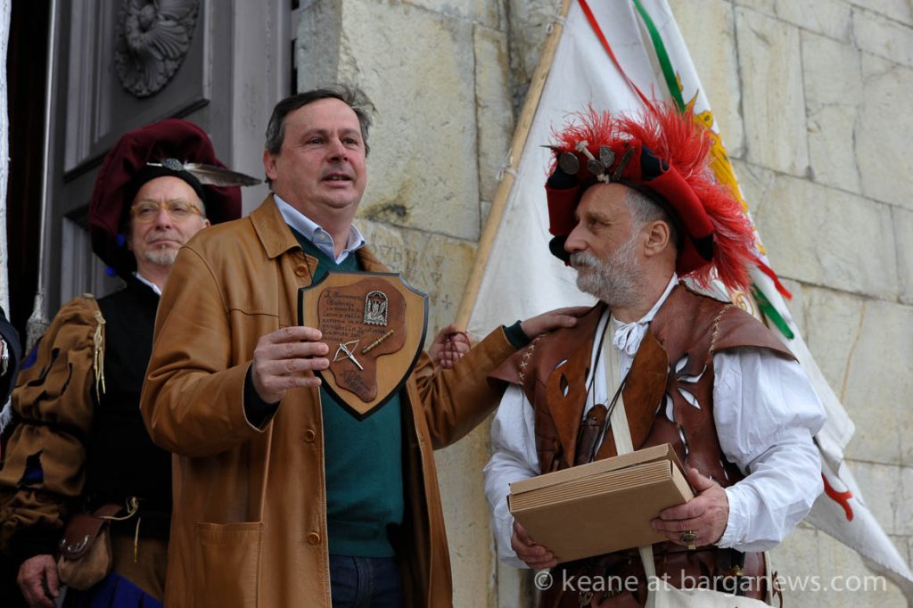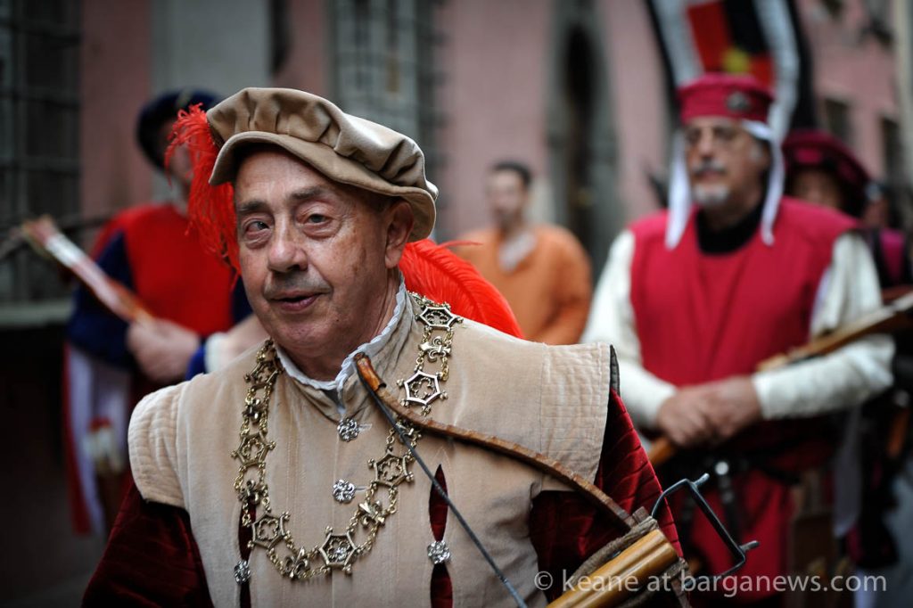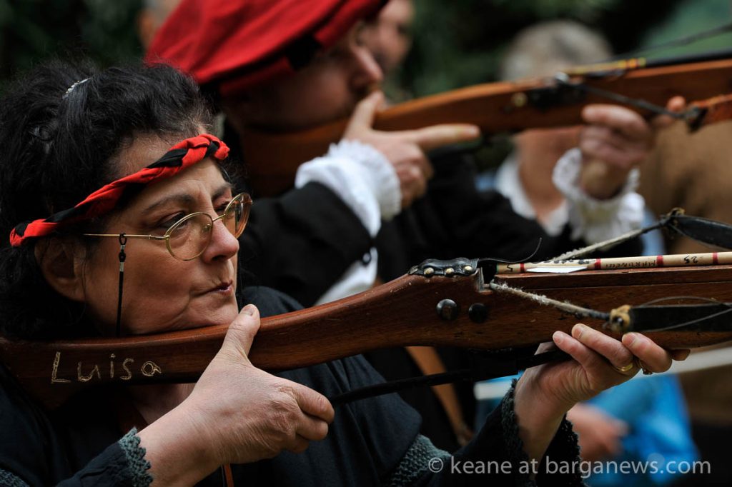 Two years ago, in 2012 the event was cancelled because of the terrible weather and this year the rain once again looked as though it would play a negative role in the day as overcast clouds threatened on both sides of the valley but by midday it had still held off and the crossbow men and women continued to shoot up at the Duomo to the delight of the visitors to Barga who had arrived specially for the event.